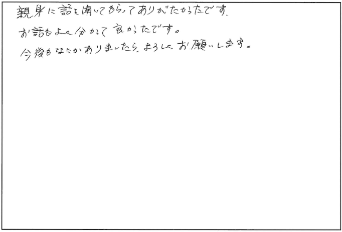 親身に話を聞いてもらってありがたかったです。