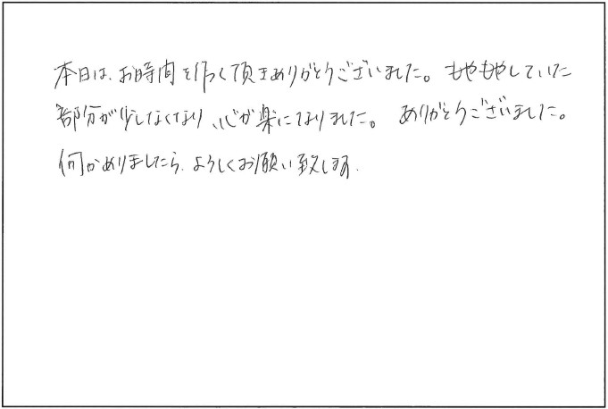 もやもやしていた部分が少しなくなり、心が楽になりました。