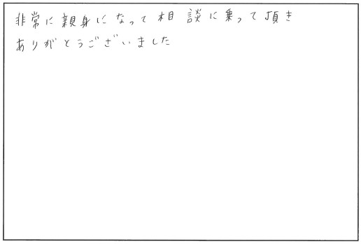 非常に親身になって相談にのって頂きありがとうございました。
