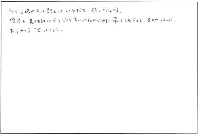 - No.14「初めての相談でしたが分かりやすく親身になって頂き気持ちが前向きになりました」